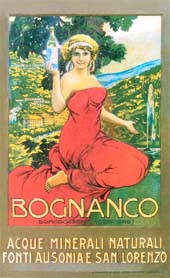 Come rifugio per i cittadini stanchi, Bognanco offre un’acqua che restituisce al cuore una nuova giovinezza, sia essa ottenuta con mezzi sconosciuti. Il ritornello di una canzone pubblicitaria degli anni ’30 coglieva bene il duplice beneficio dell’evasione nella natura e di un salutare trattamento termale a Bognanco, una stazione idrotermale che si rivolgeva a coloro che erano costretti a vivere nelle grandi città e la cui salute era minata dalle lunghe settimane lavorative.